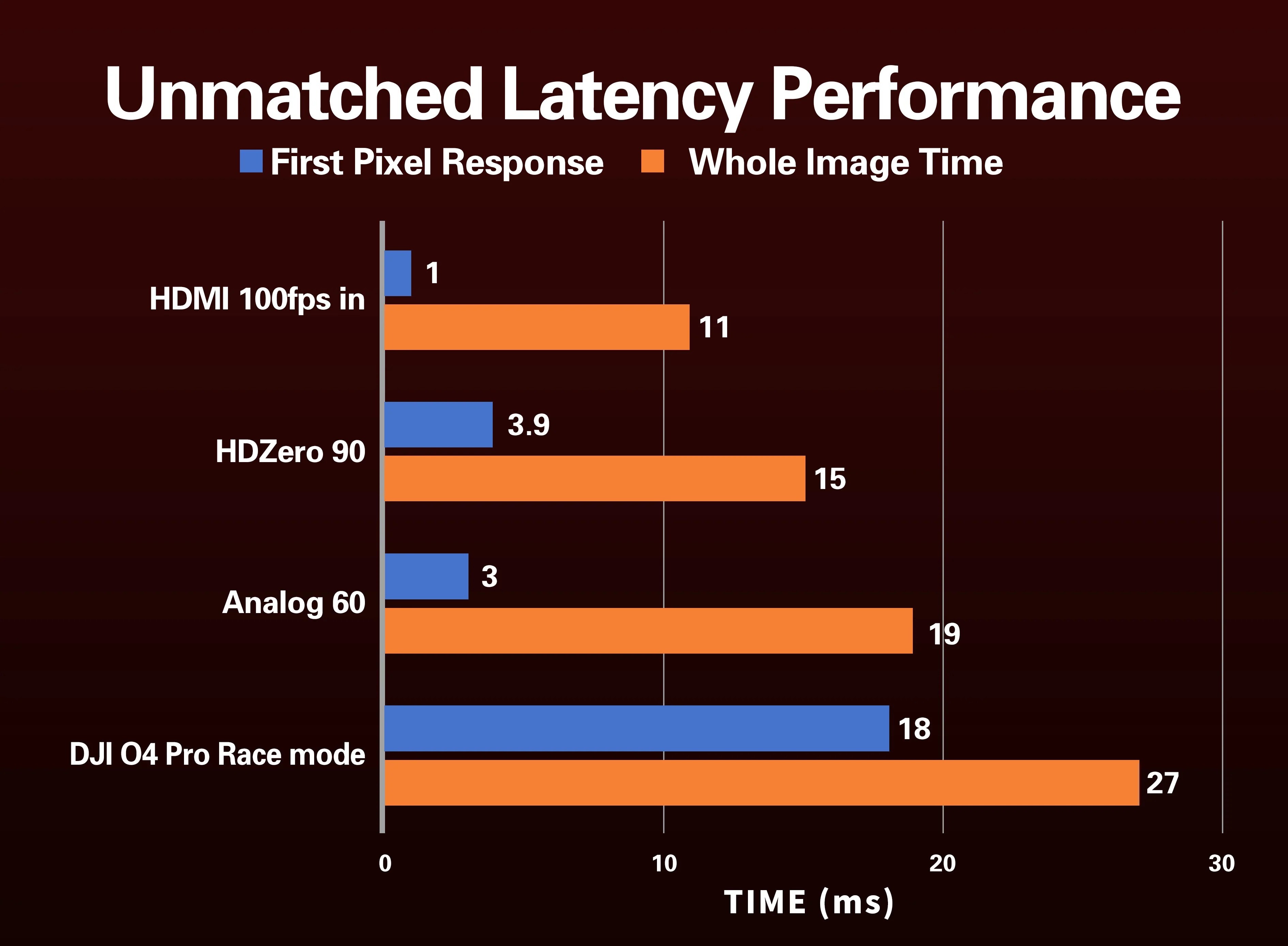 - HDZero Camera glass-to-goggle glass latency: <3ms