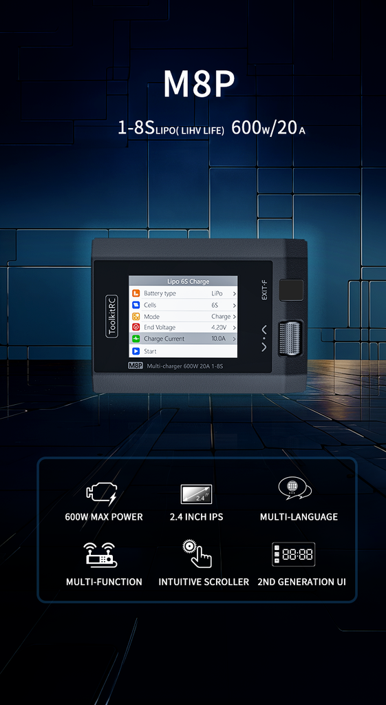 ToolkitRC M8P 600W 20A 1-8S DC Charger – XT60